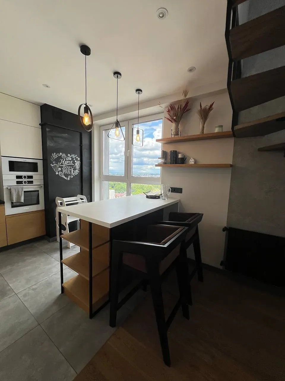 • 16-й поверх: кухня-вітальня 42 м² з панорамними вікнами, прихожа, гостьовий санвузол
