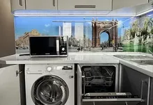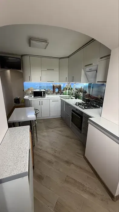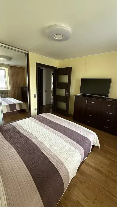 Меблі, побутова техніка: посудомийна і пральна машини, холодильник, мікрохвильова піч, варильна поверхня, духовка, кондиціонер, 3 телевізори — все, що на фото, входить у вартість.
