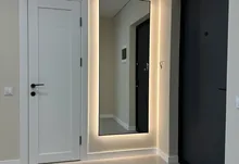 Зручна та велика вхідна група де встановлено велике дзеркало з підсвіткою, та окрема гардеробна кімната.