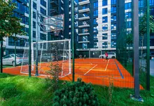 Облагороджена прибудинкова територія, де багато дитячих майданчиків та достатня кількість паркомісць.