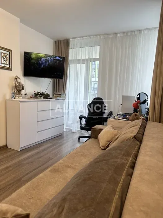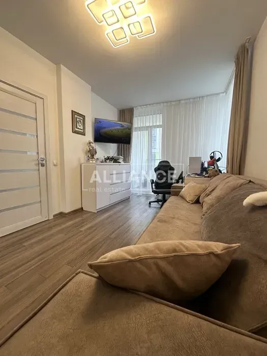 Квартира розташована у спокійному районі міста, має якісний євроремонт, повністю мебльована та обладнана сучасною побутовою технікою — духова шафа, пральна машина, мікрохвильова піч, холодильник, посудомийна машина.