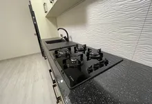 ✔️ Кухня з комплектацією: холодильник, мікрохвильова піч, духова піч, варильна газова поверхня, витяжка