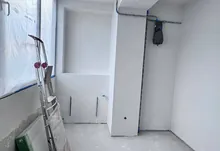 Незавершений ремонт: зроблено опалення тепла підлога, радіатори та котел, пошпакльовані стіни , розведено електрику, зроблено монтаж труб води та водовідведення ( є інсталяція та душовий трап) , частково гіпсокартон на стелях