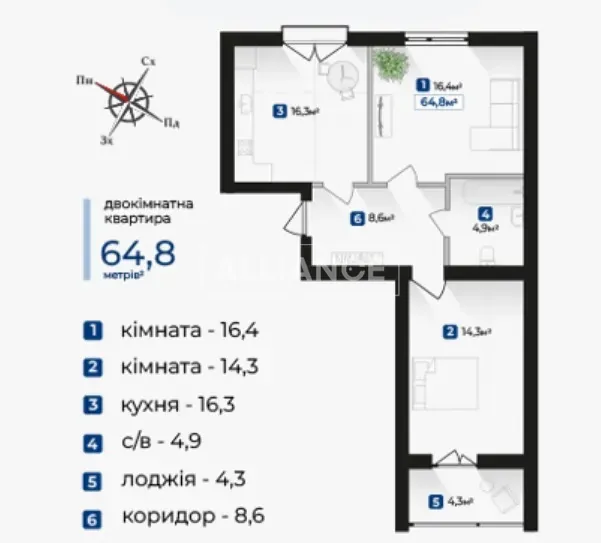 2к квартира з правильним плануванням та вигідною ціною в закритому ЖК Козацький
