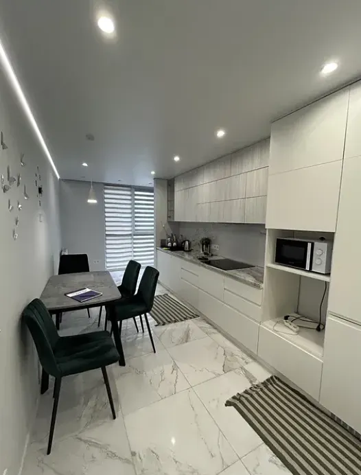 Квартира повністю мебльована та оснащена якісною побутовою технікою: посудомийна машина, варильна поверхня, духова шафа, мікрохвильова піч, холодильник, пральна і сушильна машини, телевізор.