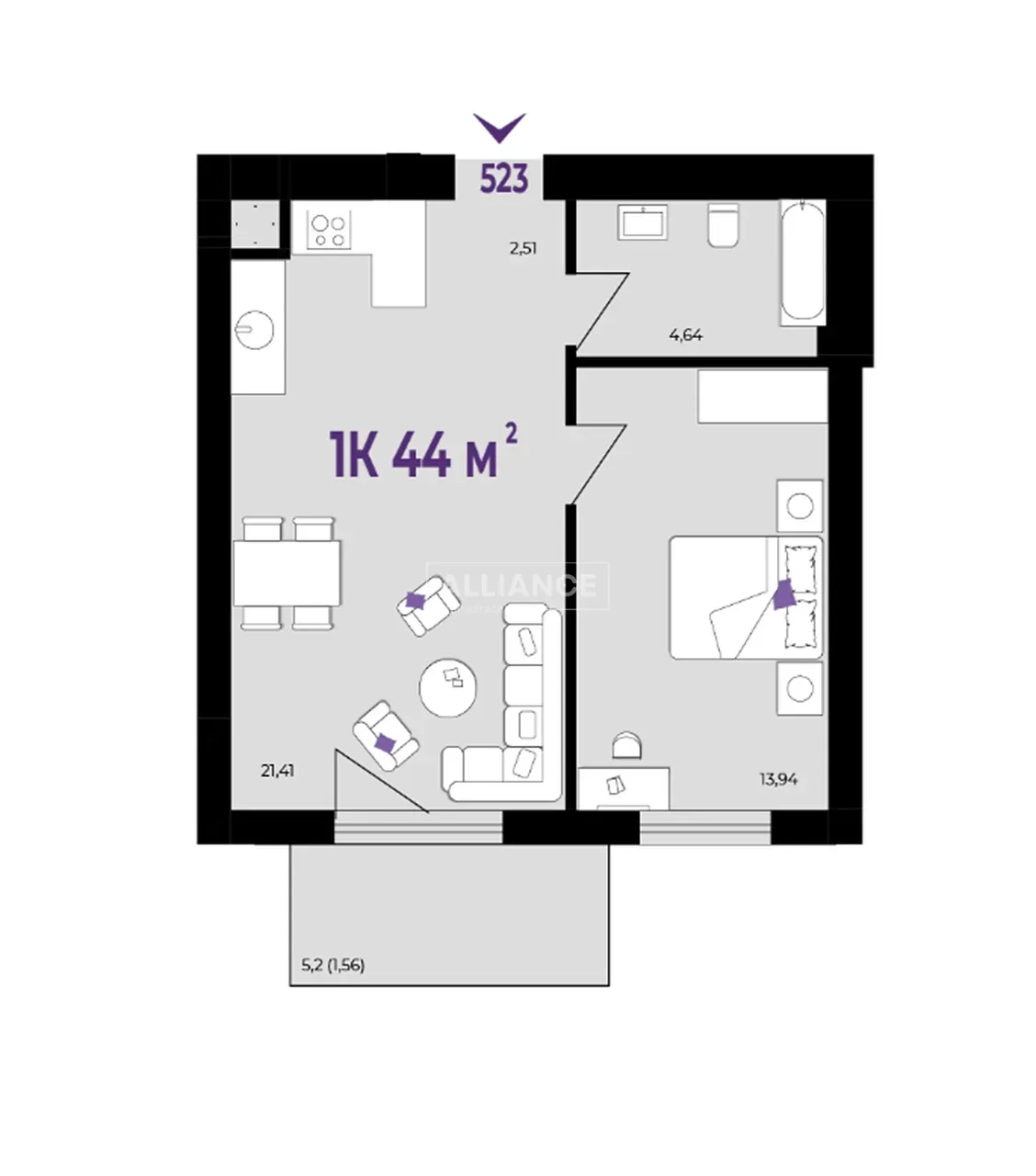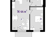 Простора 1-кімнатна квартира в престижному ЖК WAWEL, площею 44 м². з кухнею студіо на 21 м² чудове рішення для любителів комфортного простору для приготування їжі та відпочинку.