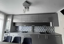 Якісні меблі з кухонною фурнітурою BLUM, вмонтована пральна машина, духова шафа, газова поверхня, мікрохвильова піч, холодильник, посудомийна машина, кондиціонер, обідній стіл зі стільцями. На кухні встановлений фільтр на питну воду.