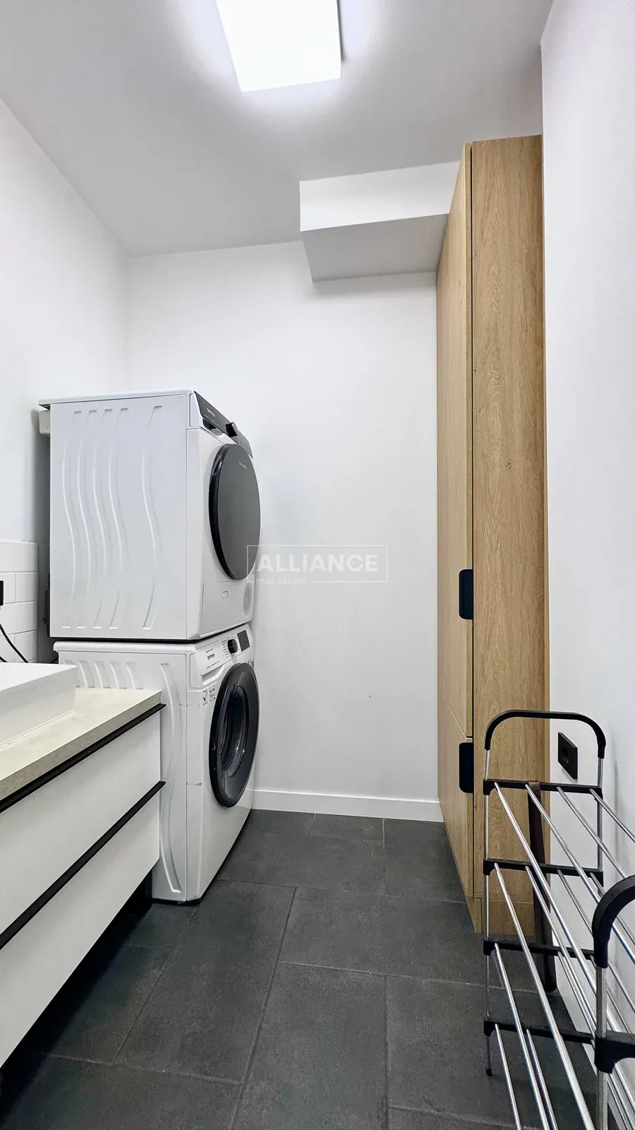 коридор, два санвузли (один перероблений як пральня в якій є пральна машинка, сушарка, рукомийник та тумба та шафа для зберігання речей), дитяча кімната, спальня батьківська з гардеробною, та власне патіо (тераса) площею 35 метрів квадратних .