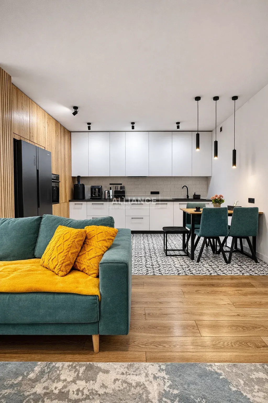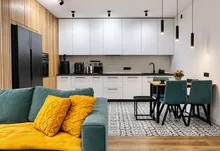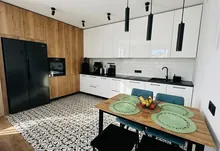 Кухня оснащена: вмістким дводверним холодильником , індукційна поверхня, духова шафа, посудомийка машина, витяжка, кавова машинка.