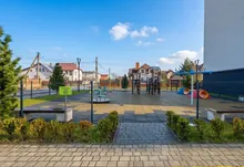 Велика закрита територія житлового комплексу, з просторим двором, великим гостьовим паркінгом, дитячим майданчиком, в затишній локації всього в 7хв їзди по прямій до самого центру міста ( стометрівки)
