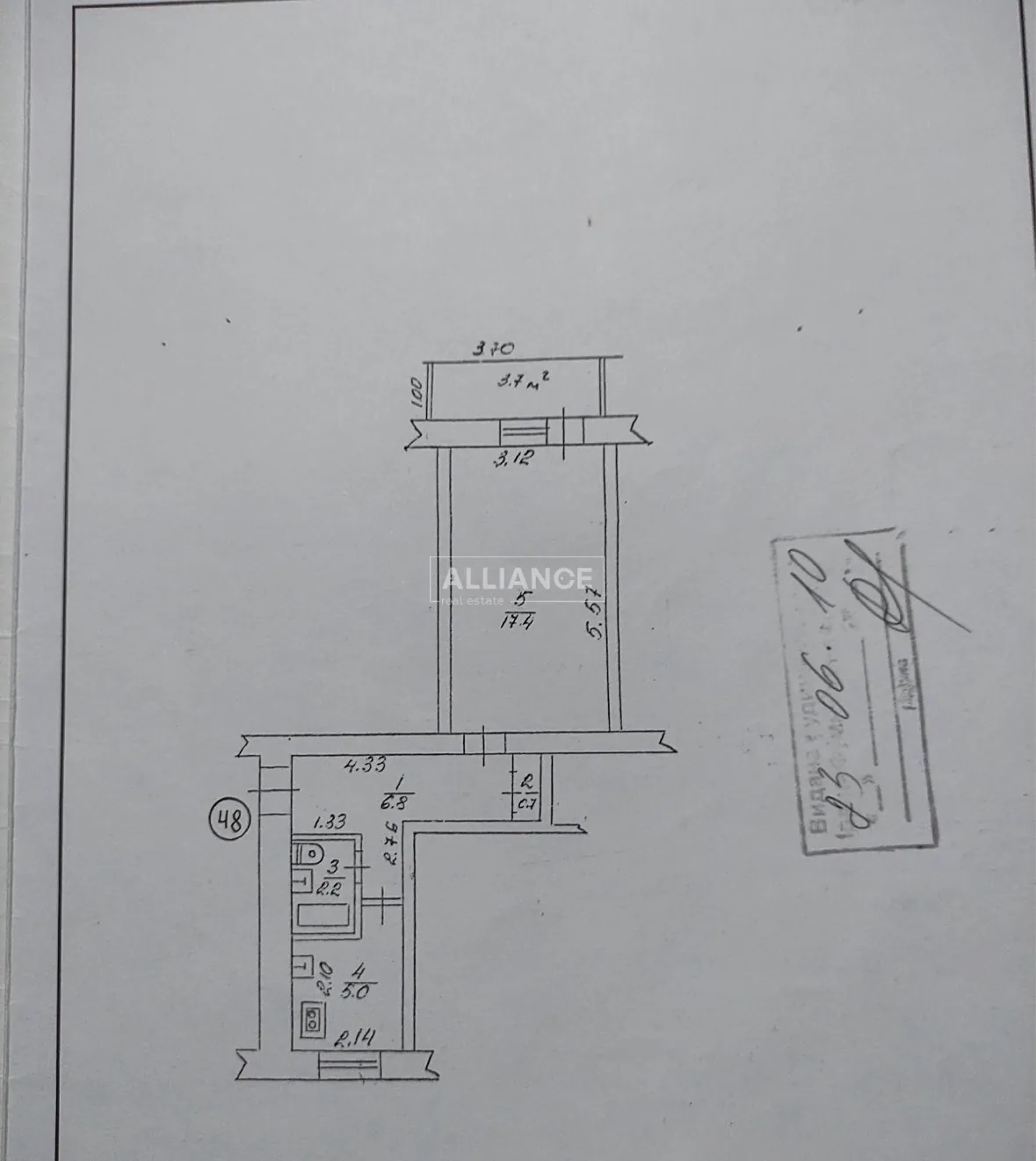 Квартира двостороння, загальною площею 33,2 м2, розташована на 5 поверсі!