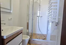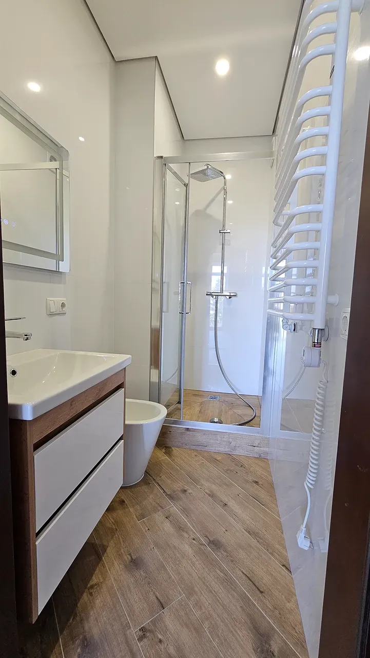 Дві просторі кімнати. Одна має вихід на французький балкон. Суміжний санвузол + в спальній кімнаті є батьківський санвузол.