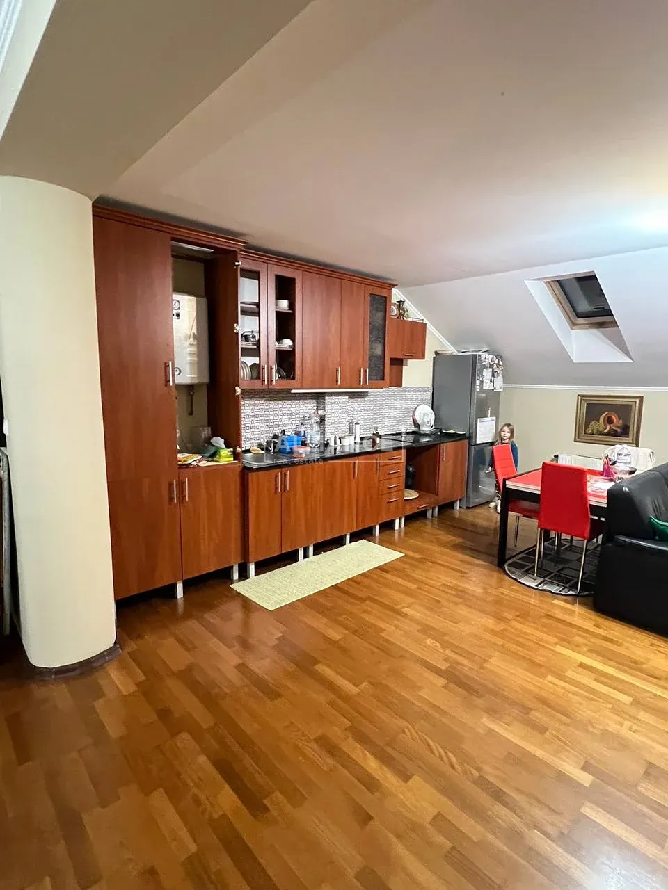 Загальною площею 91 м², розташована на 6-му поверсі 6-поверхового цегляного будинку. Квартира з сучасним євроремонтом, повністю готова до проживання, продумане та функціональне планування: окрема спальня, дитяча або кабінет, велика кухня-студія площею 32 м², просторий суміжний санвузол, а також мансарда, яку можна облаштувати під зону відпочинку, робочий простір чи спальню. У квартирі встановлене індивідуальне електричне опалення, більшість меблів і техніки залишається новим власникам, що дозволяє одразу заїхати без додаткових витрат. Будинок розташований у зручному та спокійному районі з розвиненою інфраструктурою: поруч магазини, школи, дитячі садки, зупинки громадського транспорту, парки та все необхідне для комфортного життя. Чудовий варіант як для сімейного проживання, так і для інвестиції.