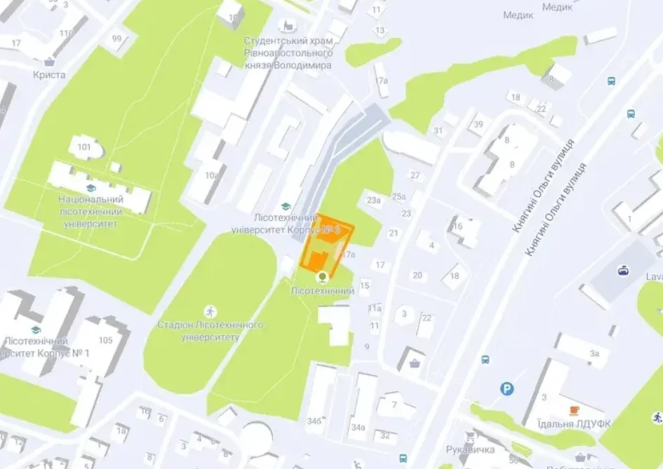 • Поруч Ботанічний сад Лісотехнічного університету – місце для прогулянок та відпочинку