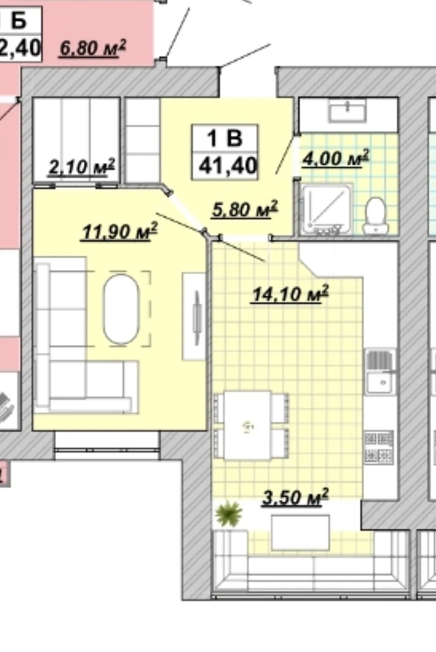 Площа 41.4 м2 , девʼятий житловий поверх