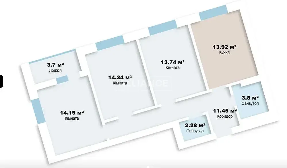 Кімнат: 3 (роздільне планування)