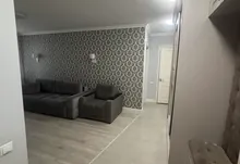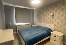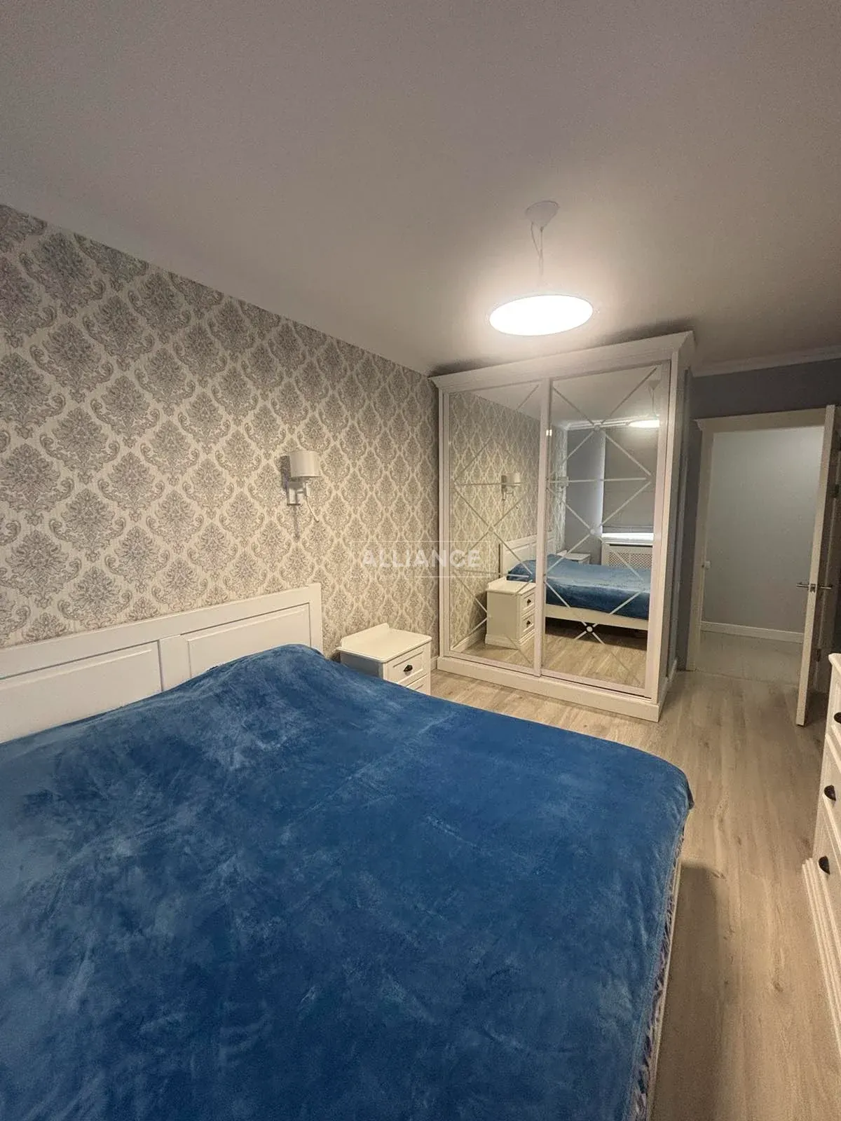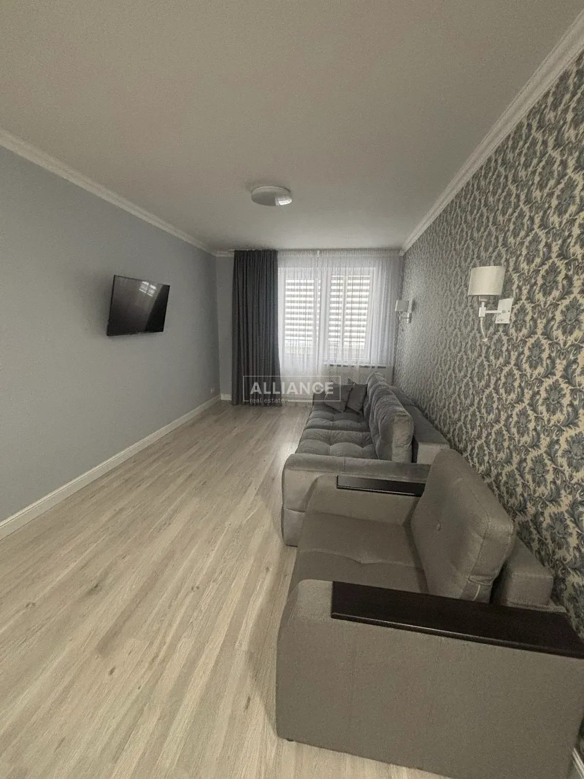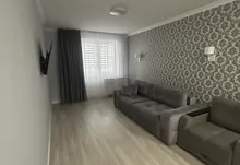 Квартира має дві кімнати , велику закриту лоджію. В спальні двоспальне дліжко, приліжкові тумби , комод, та шафакупе. В вітальні диван який розкладається та мяге крісло.