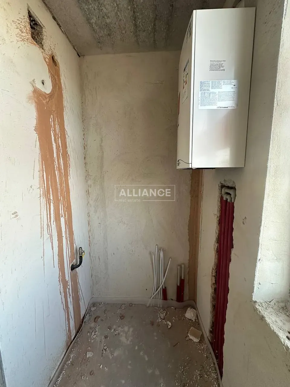 В квартирі вже встановлено котел, зроблено розводку теплої підлоги та води, залита чистова стяжка.