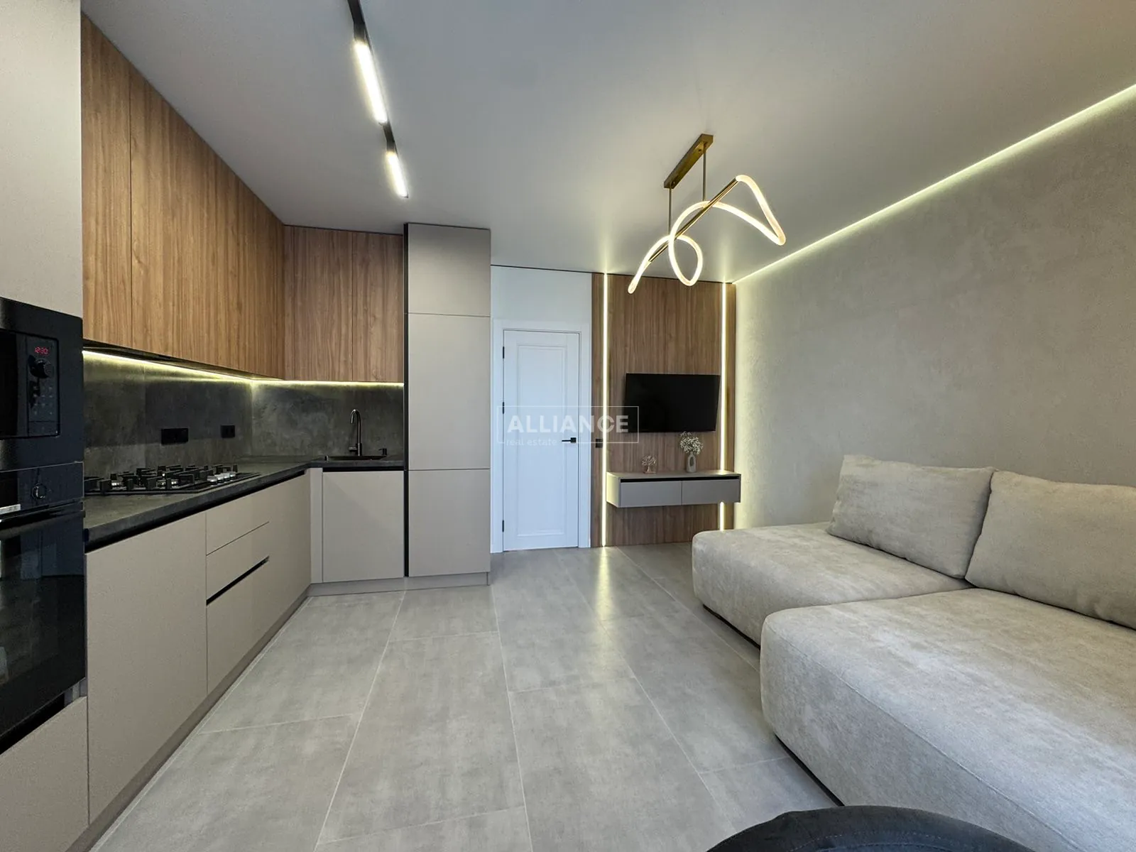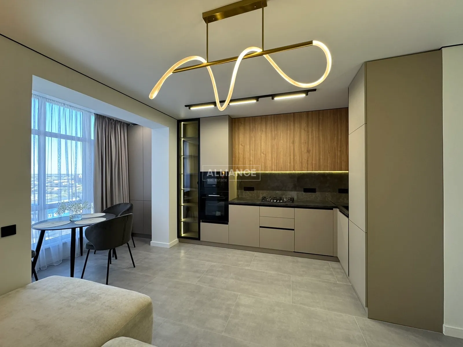 Продається 1 кім квартира 42м2, має шикарне планування. Велика кухня з панорамною лоджією та окрема кімната з місцем під гардероб.