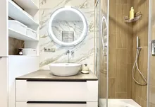 Квартира повністю укомплектована меблями та технікою. Кухня повністю укомплектована преміальною технікою фірми BOSH. Вмонтована духова та мікрохвильова піч, велика посудомийна машина 60, двох-дверний холодильник, варильна газова поверхня та витяжка. Вся фурнітура – BLUM. В квартирі індивідуальне газове опалення, встановлений двоконтурний конденсаційний газовий котел, а також встановлено додатково бойлер – для зручності. Також у квартиру заведено 10 кВт світла. Тепла підлога повністю по всій квартирі. Встановлено 2 кондиціонера, які працюють, як на обігрів – так і на охолодження. Батьківській санвузол облаштований ванною зі скляною перегородкою, інсталяцією, гігієнічним душем та дзеркалом-шафою з підсвіткою.