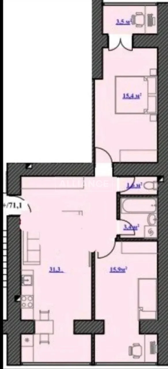 Частково змінене планування (обʼєднано ванну і туалет для більшого комфорту)