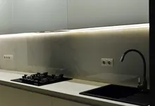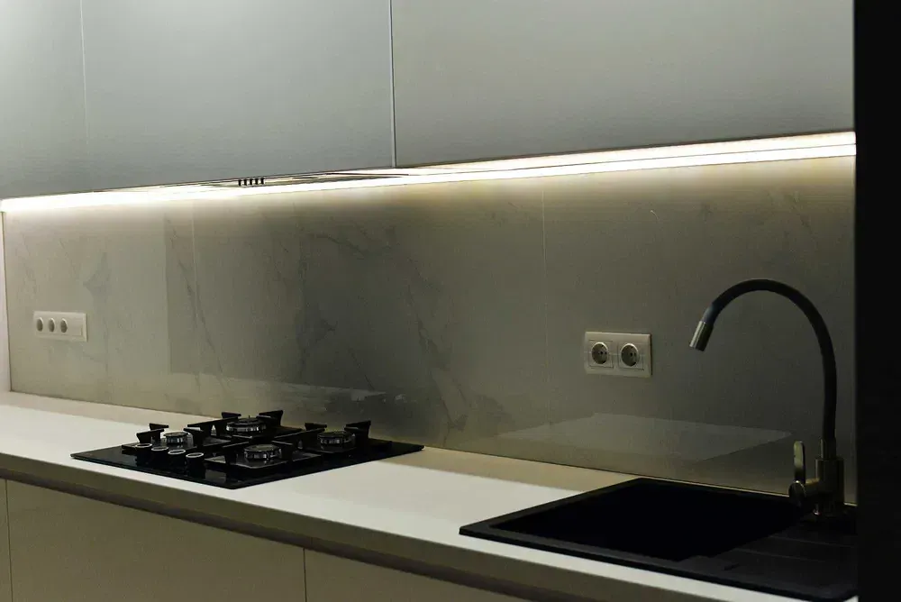 Розводка лише з екранованого мідного, монолітного дроту Запорізького заводу, що вважається кращим в Україні. На кожну групу окрема розводка і свій автомат. Встановлено не просто напругу. Встановлено близько 20 джерел енергозберігаючого світла і діодні ленти по периметру кухні-студії. Більше 30 розеток, вимикачів, перемикачів вимикачів французької компанії Lezard, що з підсвіткою.