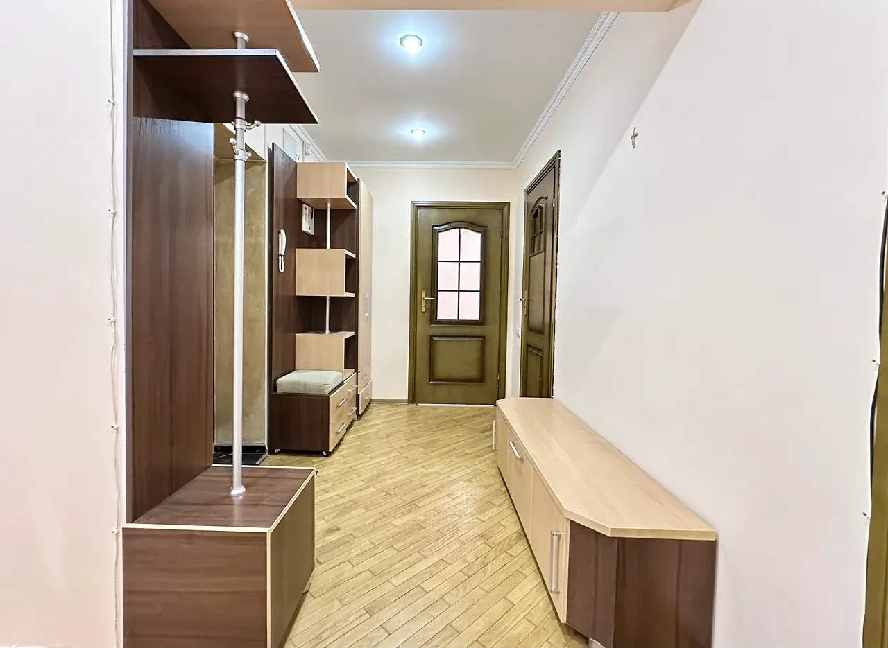 Перевагою даної квартири є наявність великого суміжного санвузла площею 8,6 метрів квадратних, в якому є і ванна, і душова кабіна!