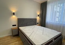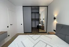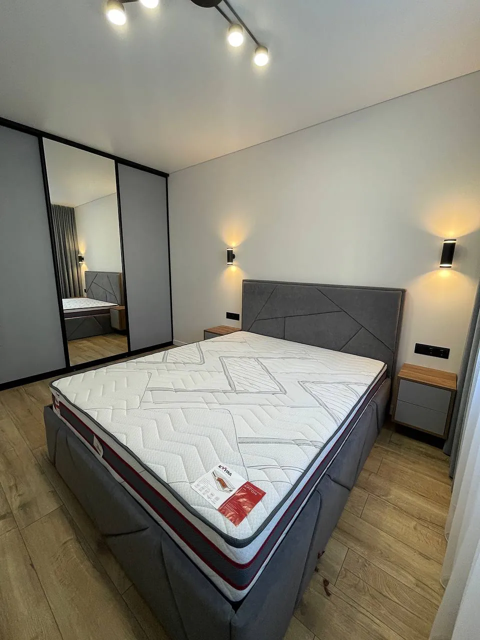 • Окрема спальня з великим ліжком та вбудованим гардеробом;