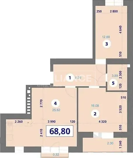 Загальна площа становить 69 кв.м.
