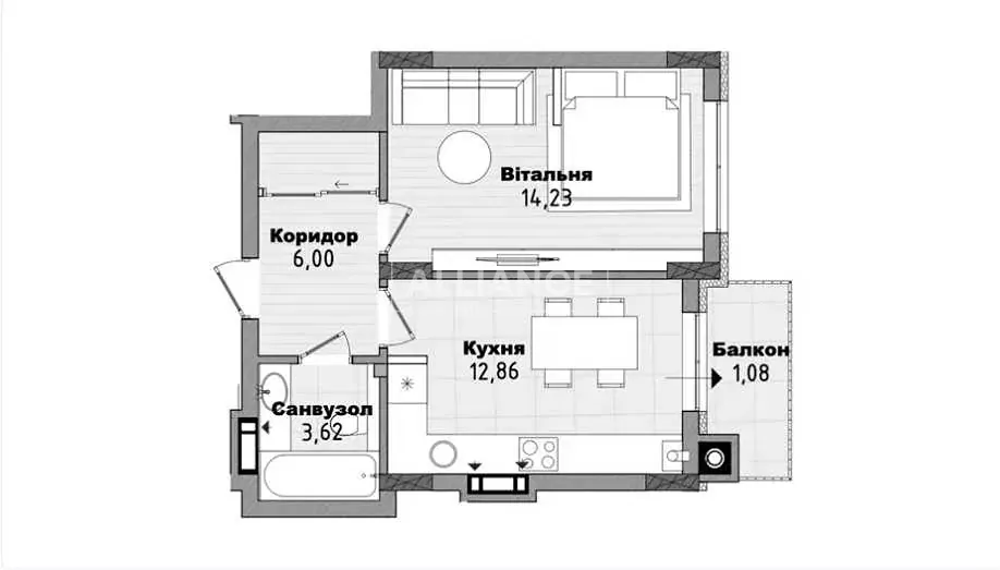 Продається 1-кімнатна квартира 38 м² із балконом у 1-й секції клубного будинку San Marco.