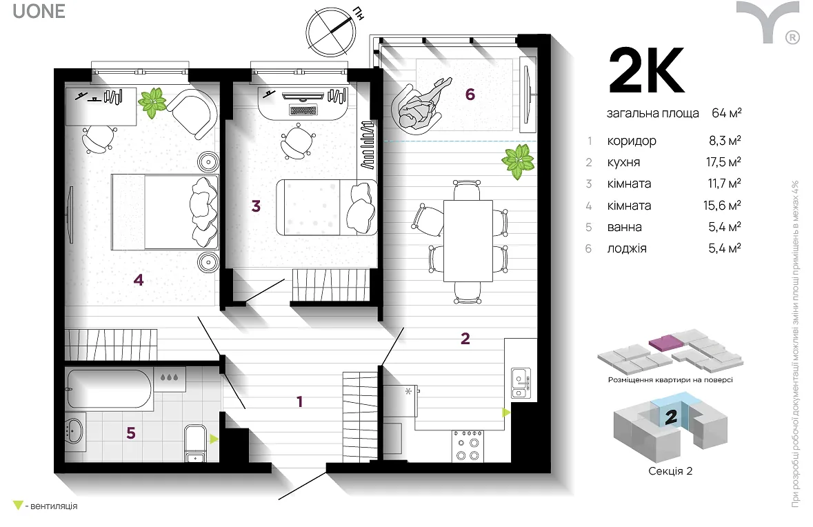 Простора 2к. квартира з якісним ремонтом, меблями та технікою, площею 64 метри квадратних на ідеально зручному 3 поверсі!