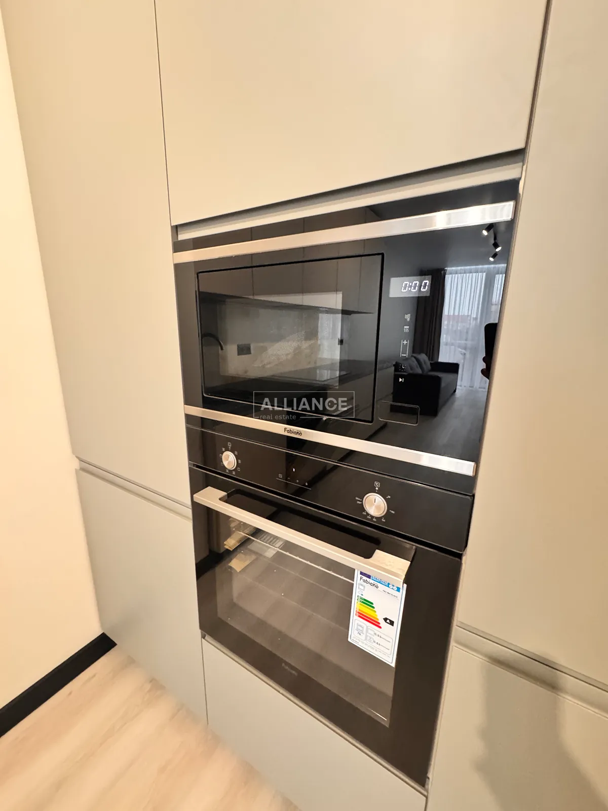Квартира світла за рахунок великих панорамних енергоефективних вікон.