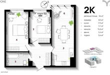 Квартира з чудовим, продуманим плануванням з великою кухнею-студією, двома окремими кімнатами та суміжним санвузлом.