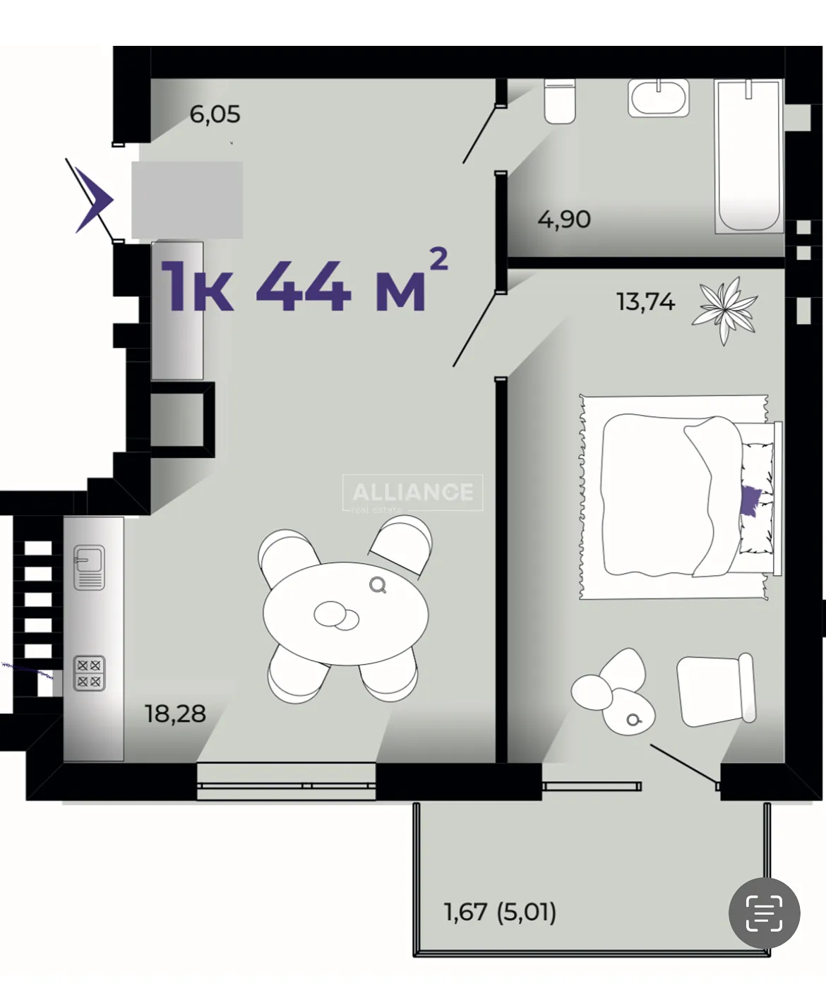 1-кімнатна квартира в ЖК Prostir, 44м2
