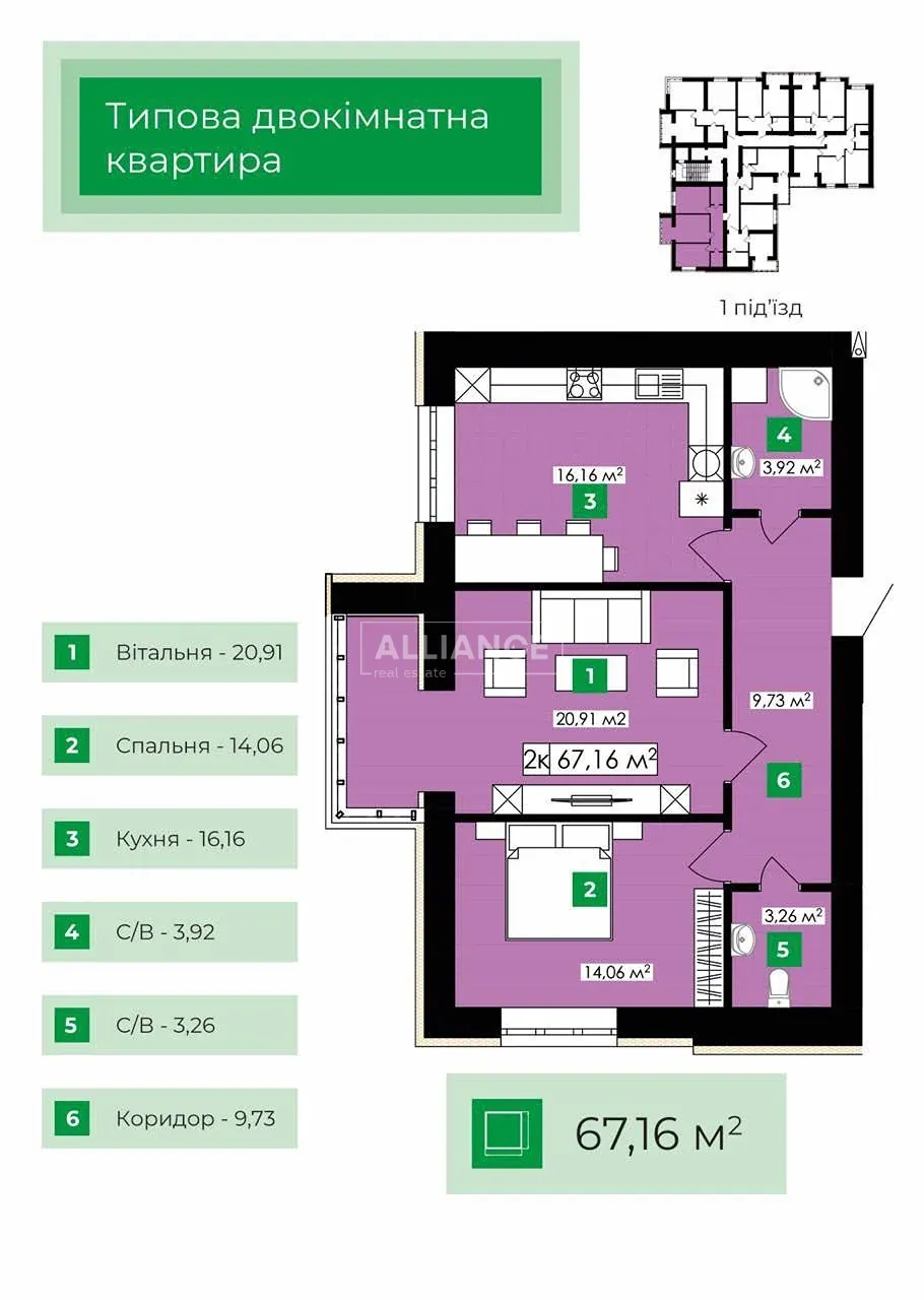 • дві окремі кімнати, що забезпечують комфорт кожному члену сімʼї;
