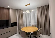 Стильна 2-кімнатна квартира з якісним дизайнерським ремонтом. Всі меблі та техніка залишаються — заїжджай і живи!Вдале планування, простора кухня, панорамні вікна, багато світла.
