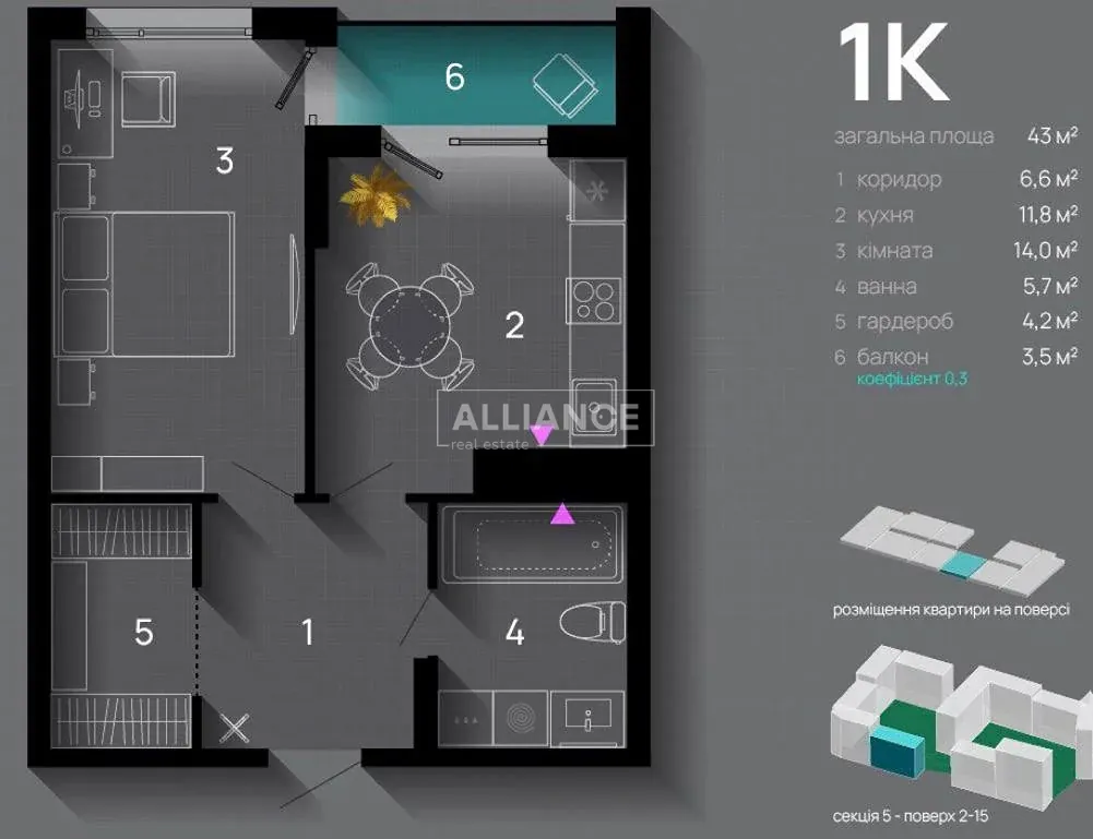 Продаж 1-кімнатної квартири в ЖК SkyGarden