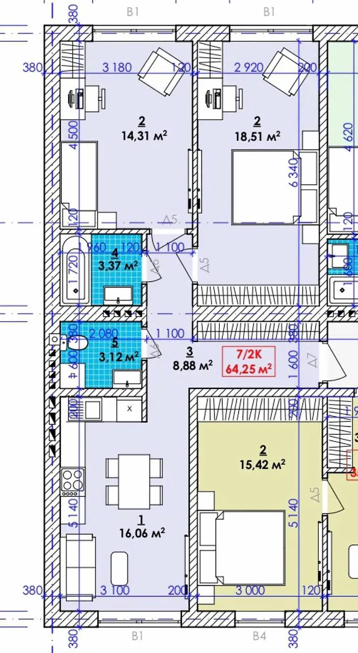 Загальна площа 64м2