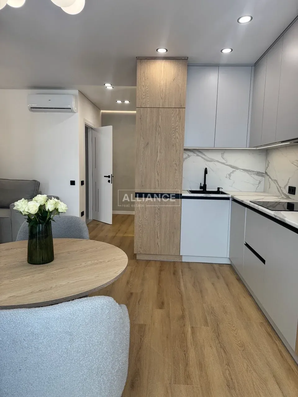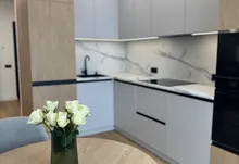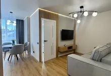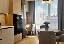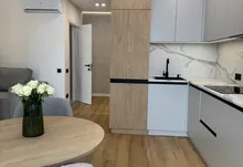 Квартира з новим та сучасним ремонтом який робився з якісних і дорогих матеріалів. Є простора кухня-студія і окрема кімната. Всюди де плитка - тепла підлога. В квартирі встановлено холодильник,посудомийну машину, тепловий насос.