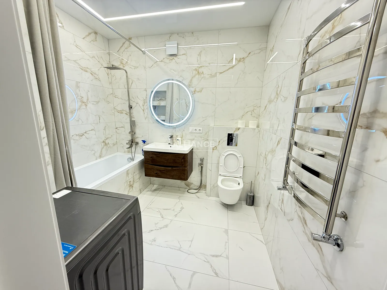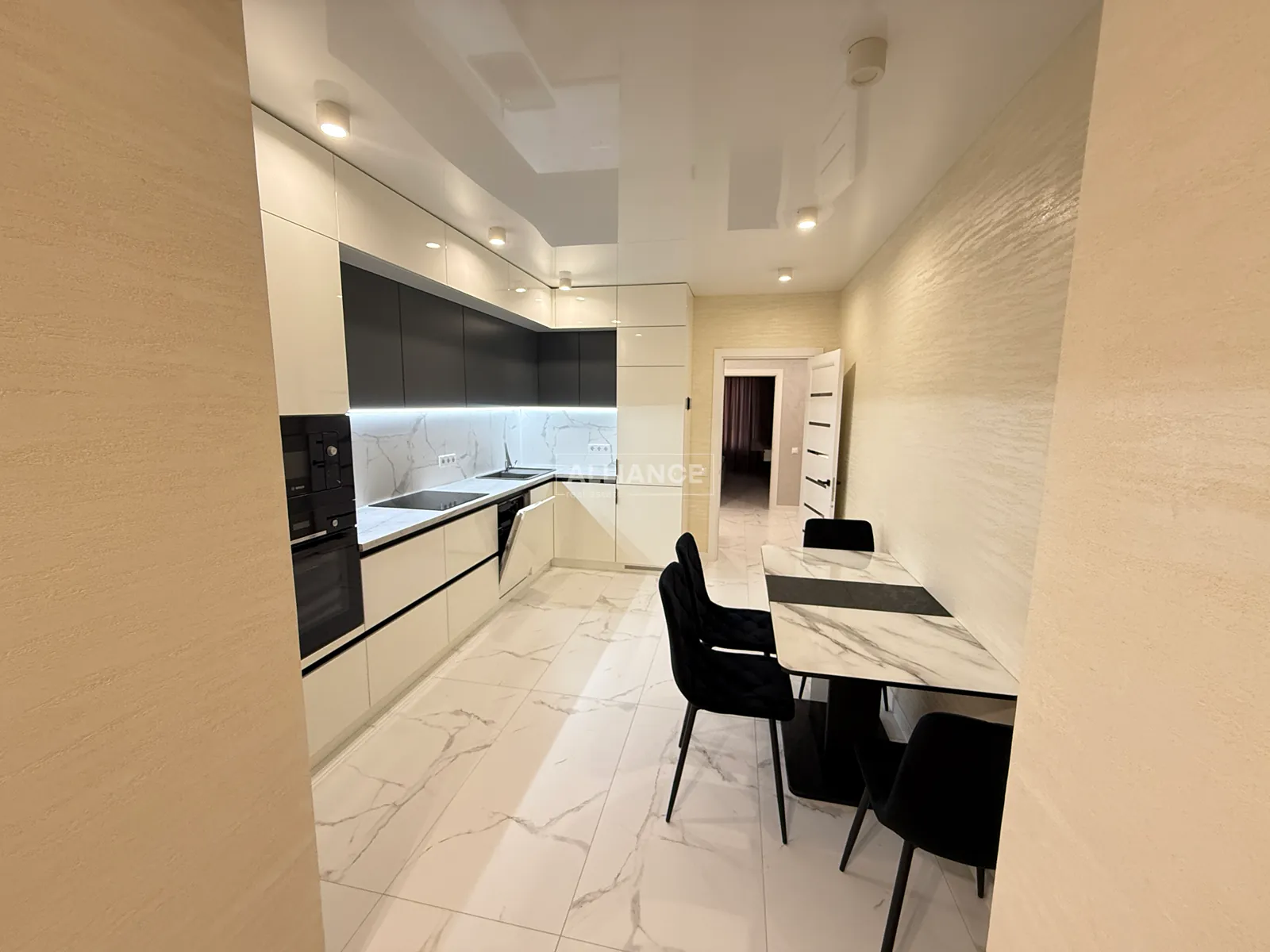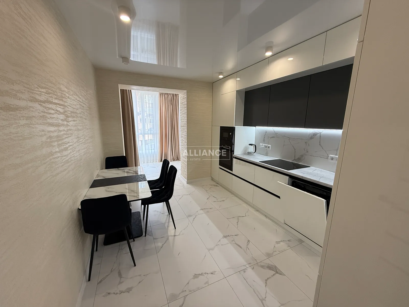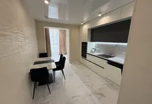 Квартира повністю укомплектована необхідною технікою: посудомийна машина, холодильник, мікрохвильова піч, духова шафа.