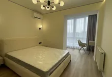• Спальня з лоджією — двоспальне ліжко, шафи для зберігання речей, beauty-зона, приліжкові тумби, додатковий кондиціонер.