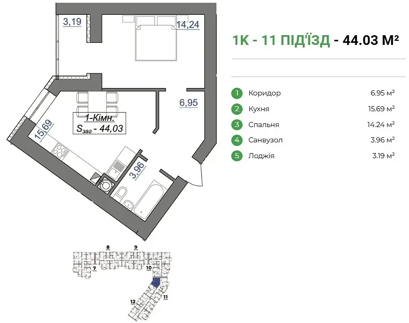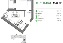 • Загальна площа: 44.03 м²