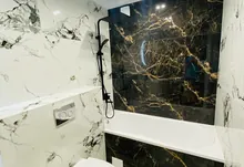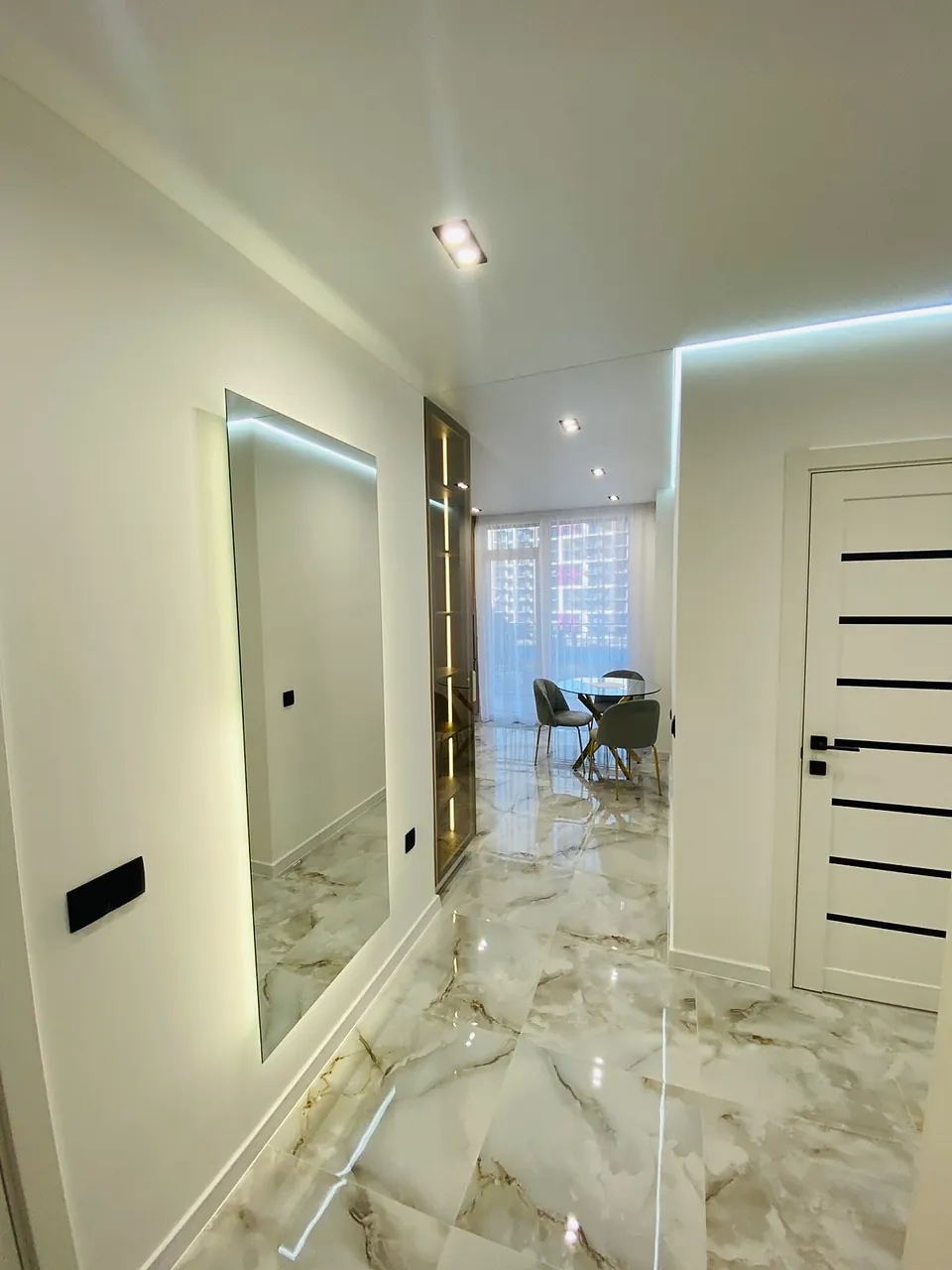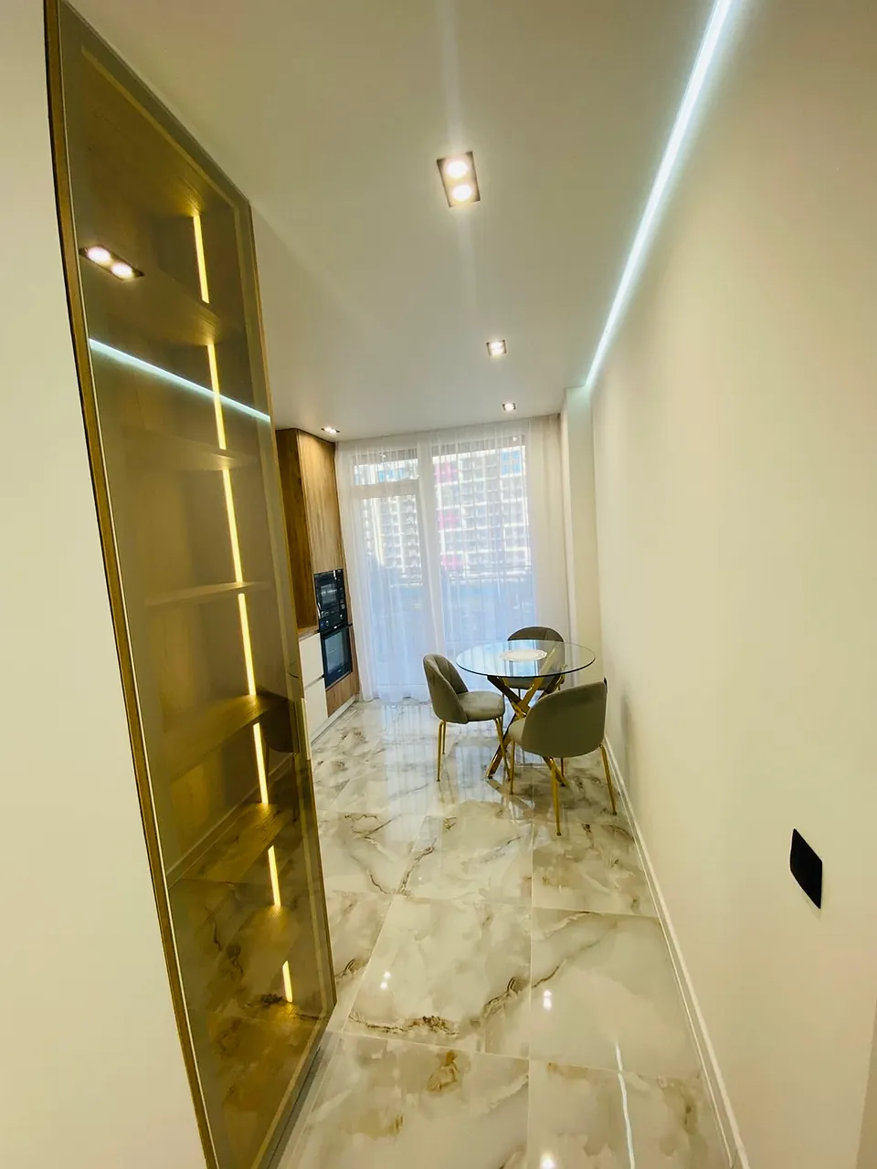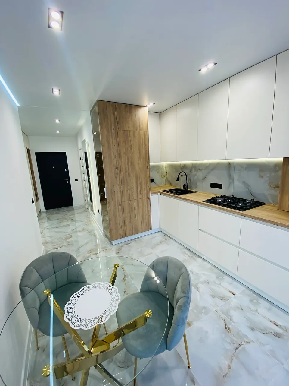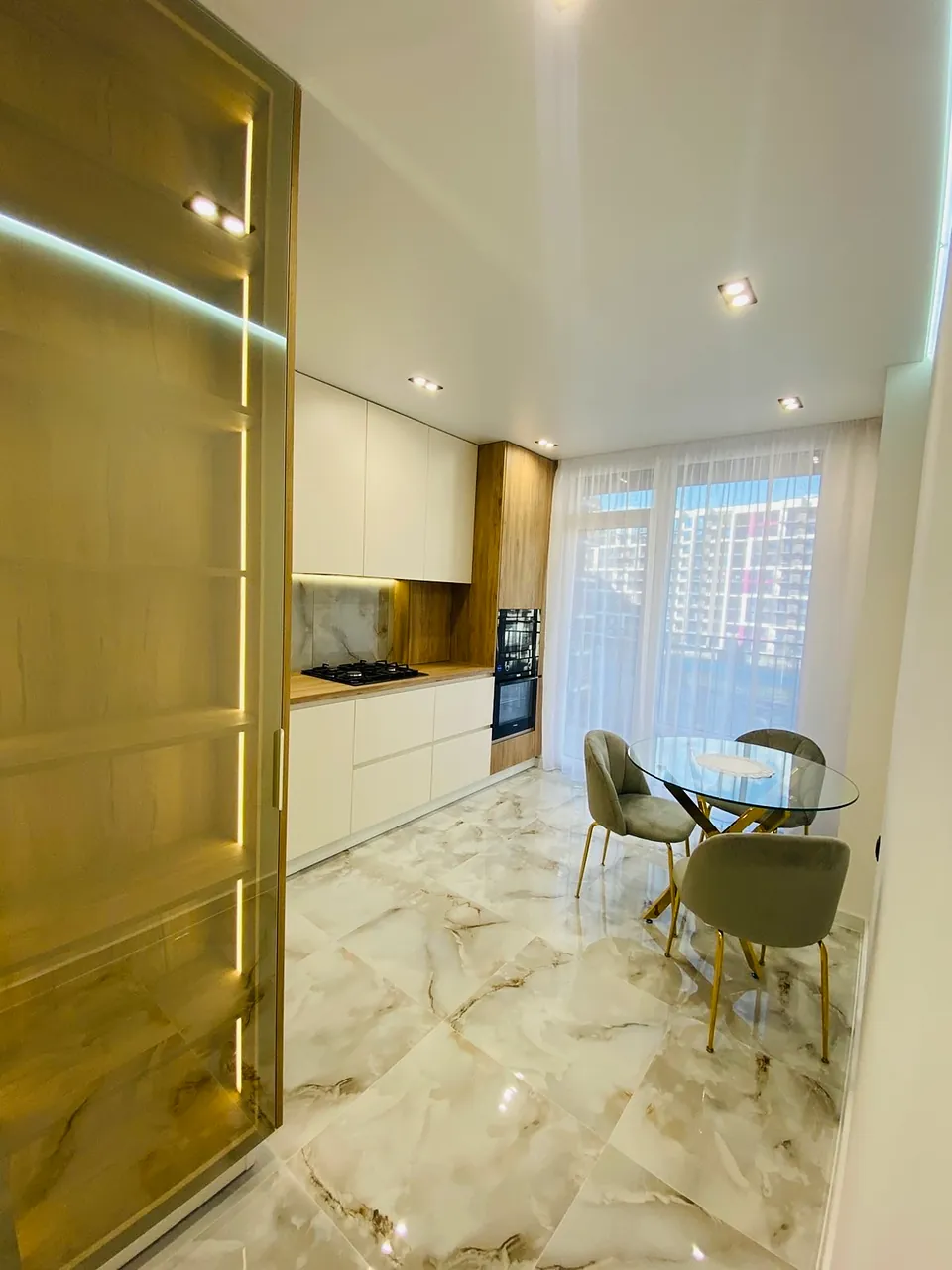 По всій квартирі підігрів підлоги, в кухні, коридорі, в гостьовій кімнаті , спальні та ванній. Вся плитка дорога широкоформатна.