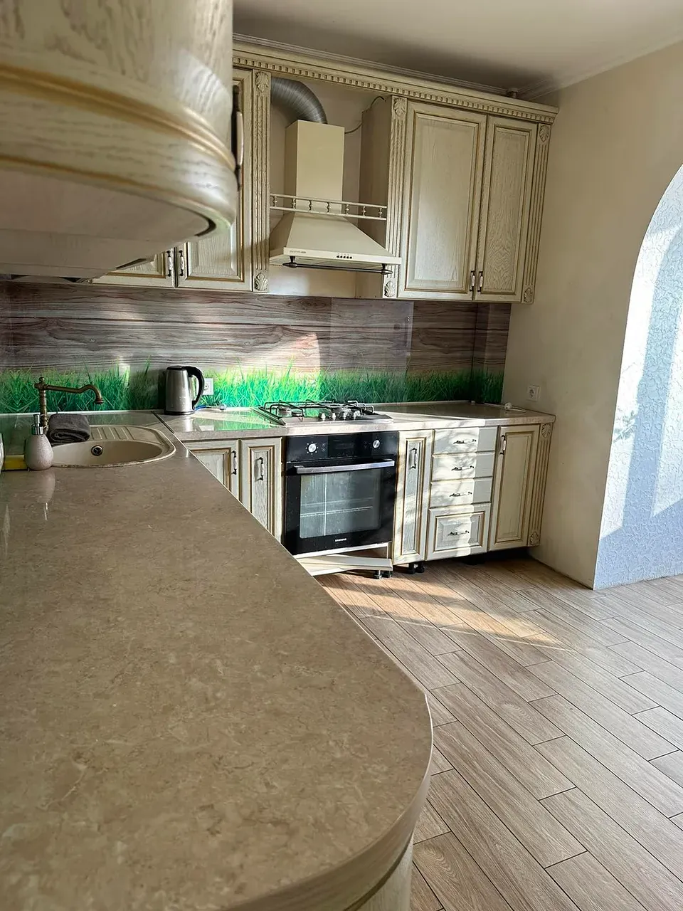 Квартира великої площі 74 метри квадратних, розташована на першому житловому поверсі. Квартира має велику кухню з виходом на сонячну лоджію, дві окремі кімнати, гарний суміжний санвузол з ванною . У квартирі індивідуальне газове опалення. квартира дуже тепла та світла, також встановлено кондиціонер для максимального комфорту. Підлога виконана з дубового паркету, двері фірми “Максимум”, виконані з дубового шпону. Ремонт у квартирі робили для себе, тому використовували хороші матеріали.