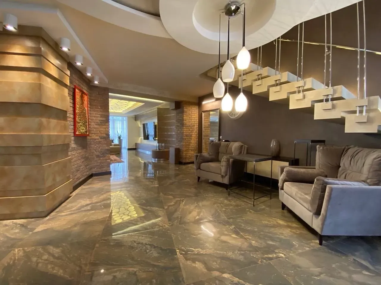 Квартира розташована на 9 поверсі, є ліфт. В квартирі виконаний сучасний ремонт, є всі необхідні меблі і побутова техніка, посуд. Підігрів підлоги, індивідуальне опалення, кондиціонери, охорона, wifi, все працює, все залишається.