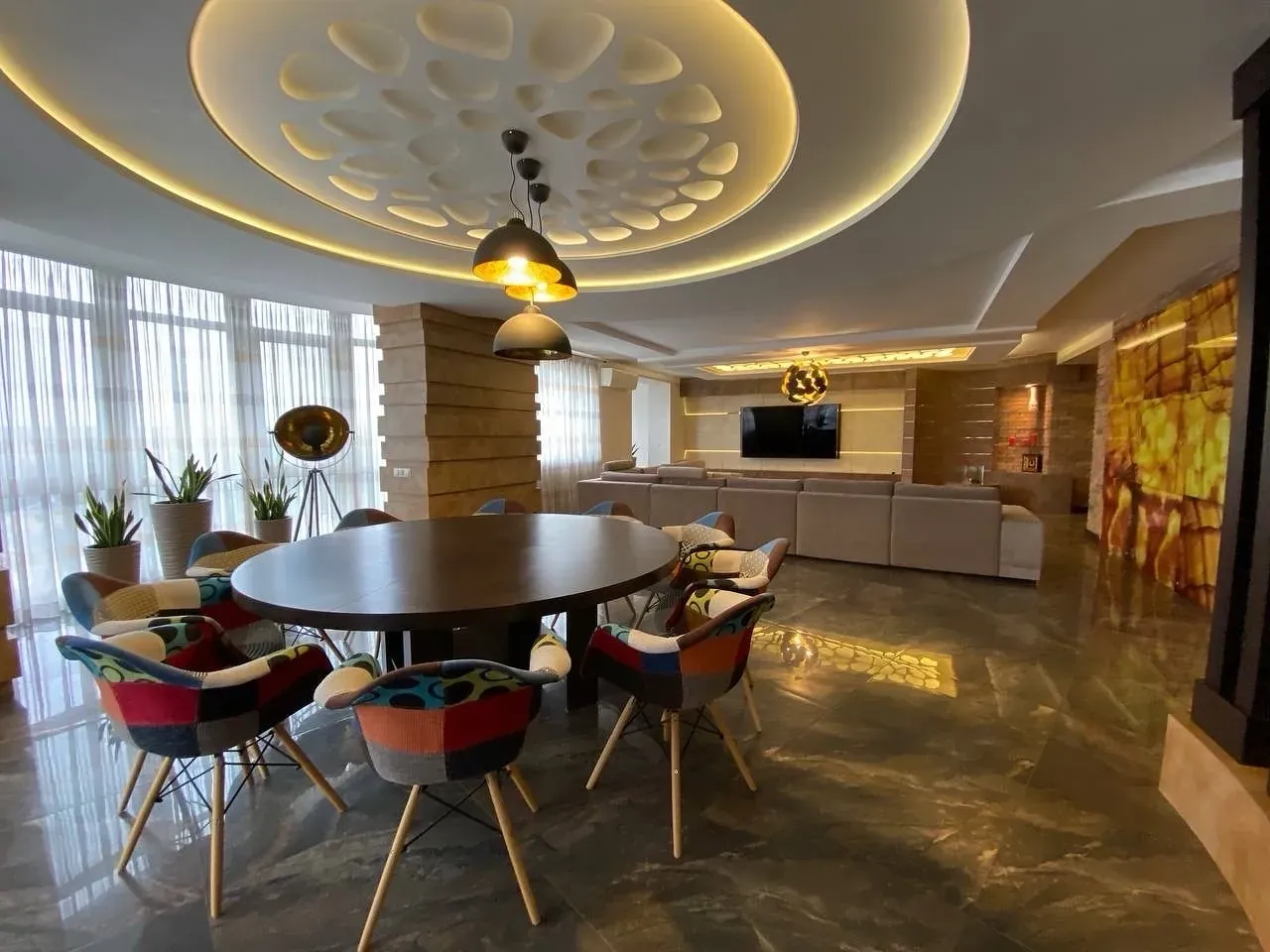 Загальна площа квартири-403,6 м квадратних., житлова 119,6 м. 2 окремі спальні з санвузлами.