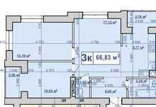 Площа 67м2 , можна перепланувати у двокімнатну кухню студію.