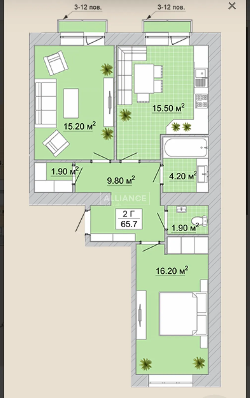 Площа: 66,2 м² з обмірами БТІ