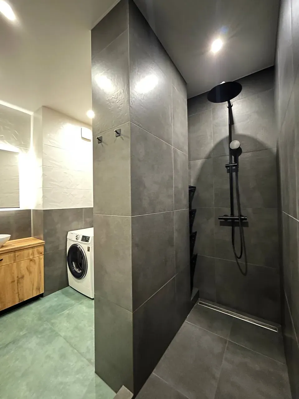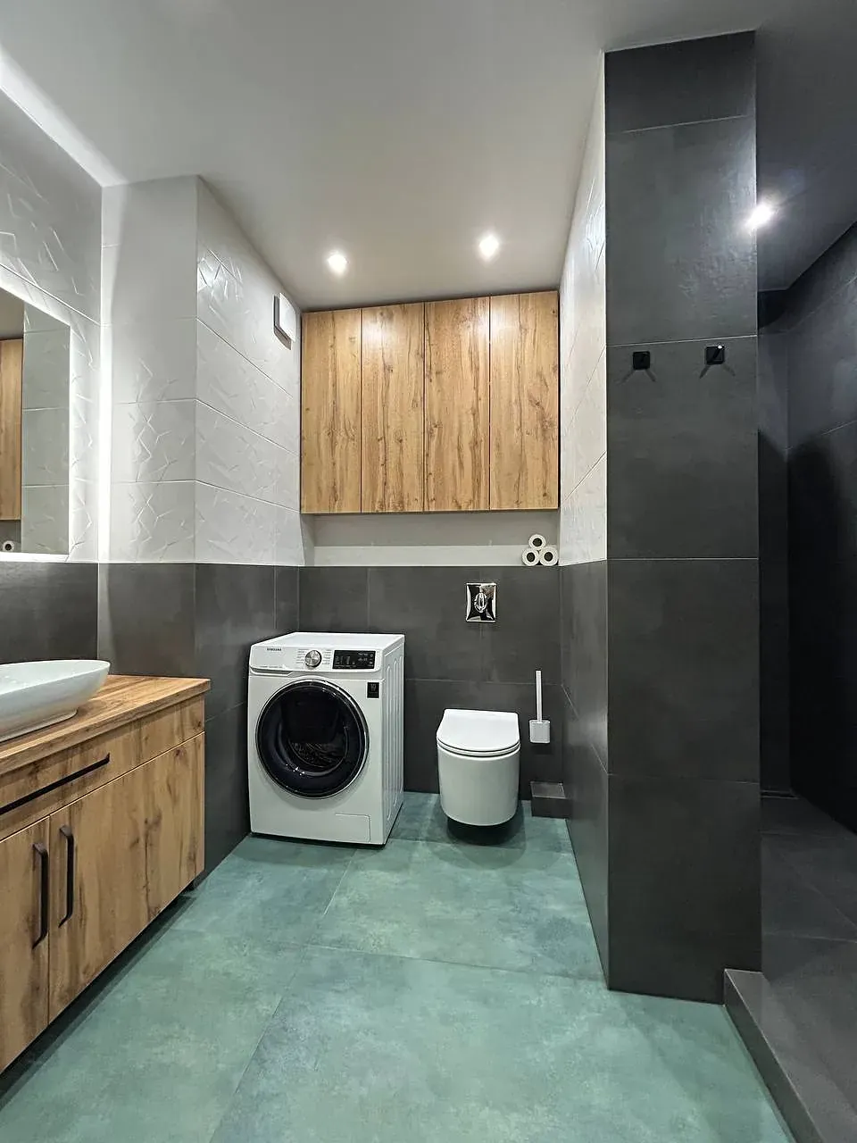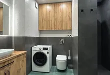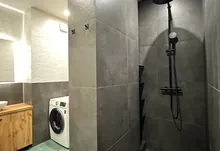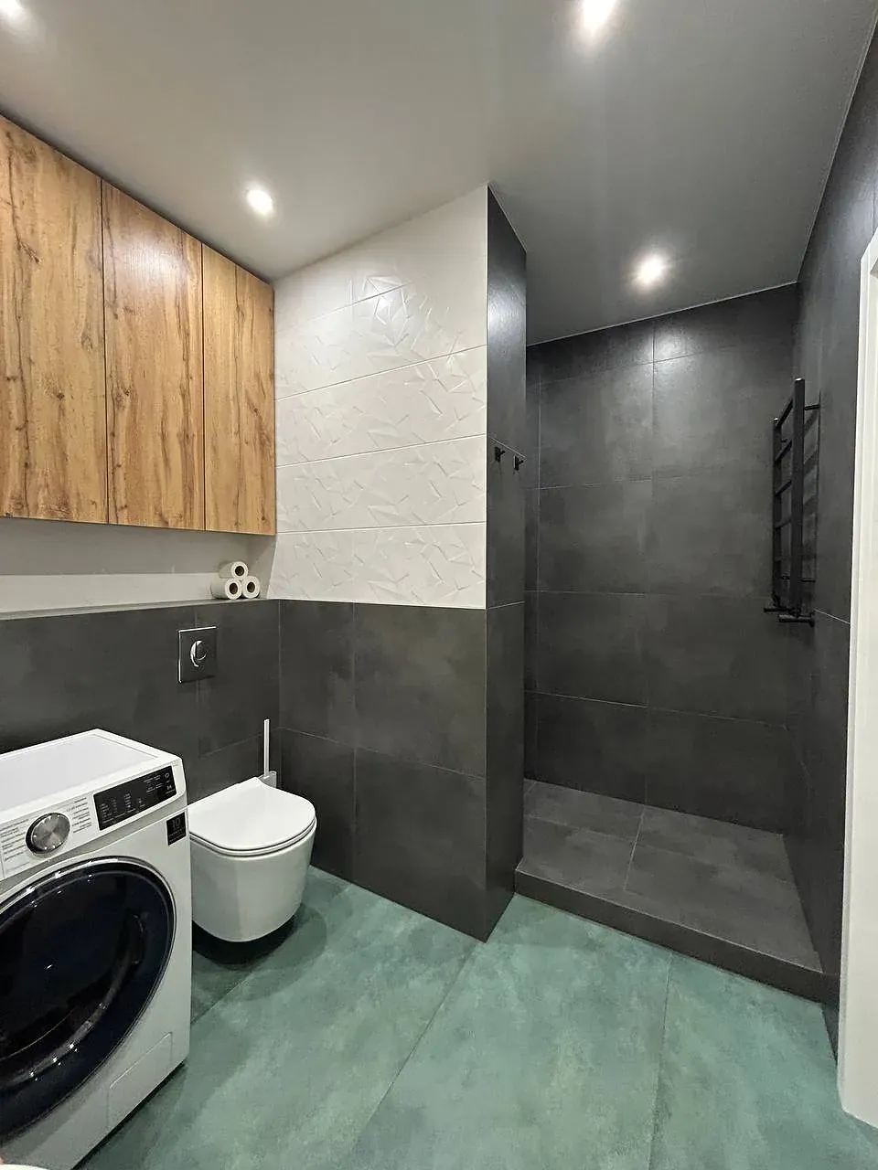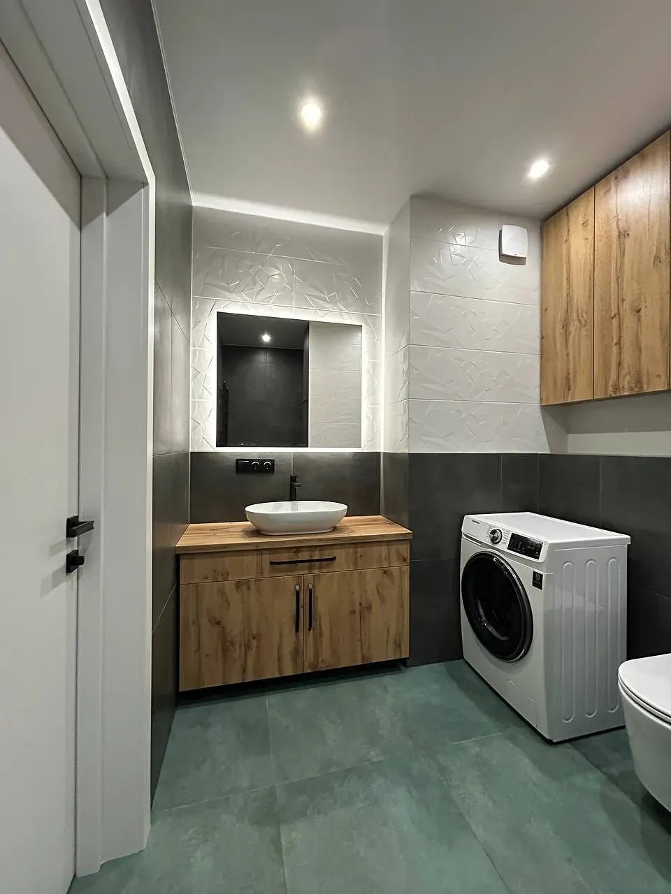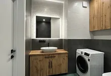 • санвузол продуманий до дрібниць: пральна машина Samsung, дзеркало з підсвіткою, шафа, тумба з умивальником, інсталяція, душова зона з поличками, сушка для білизни