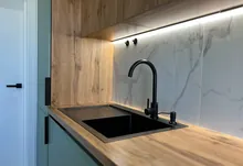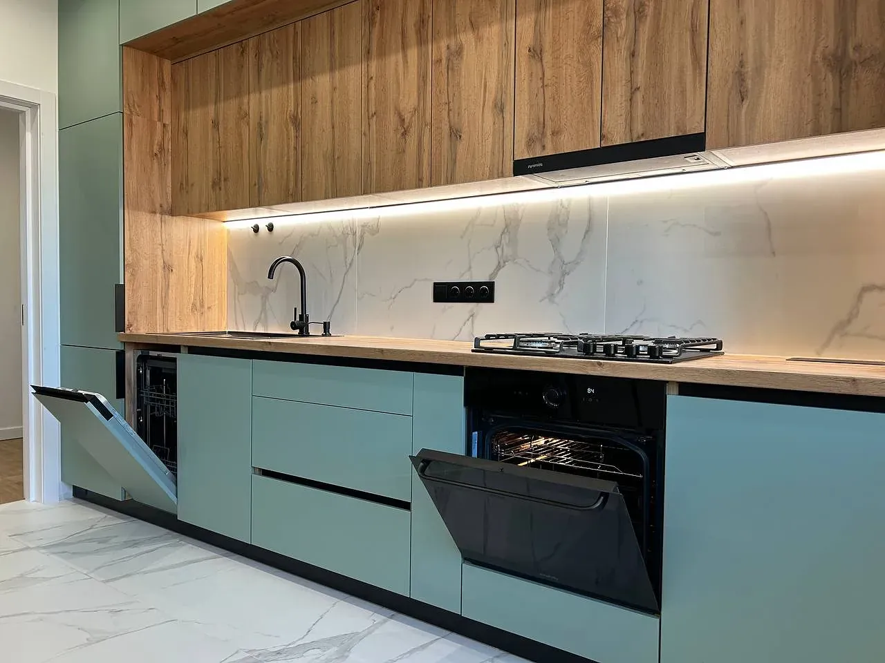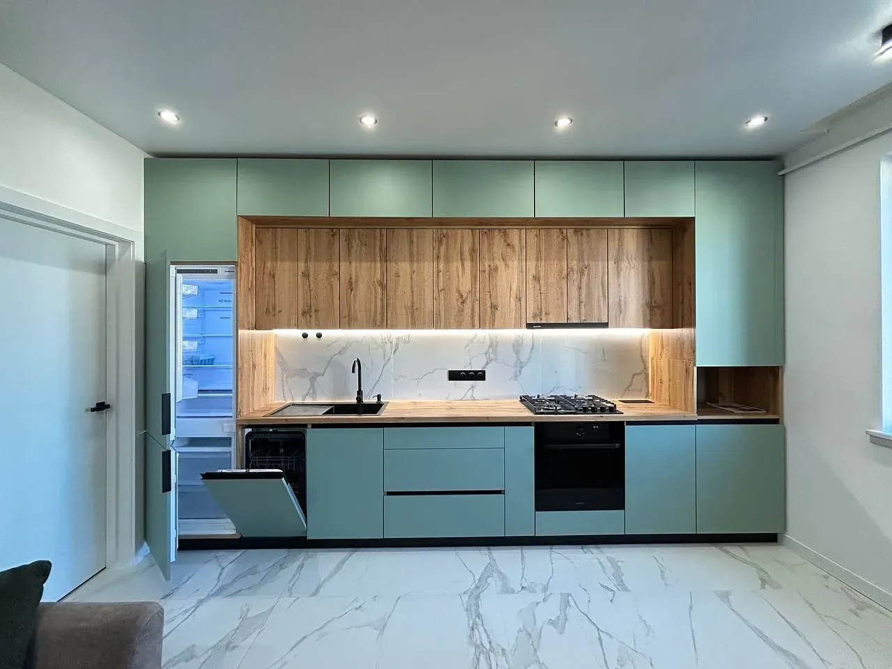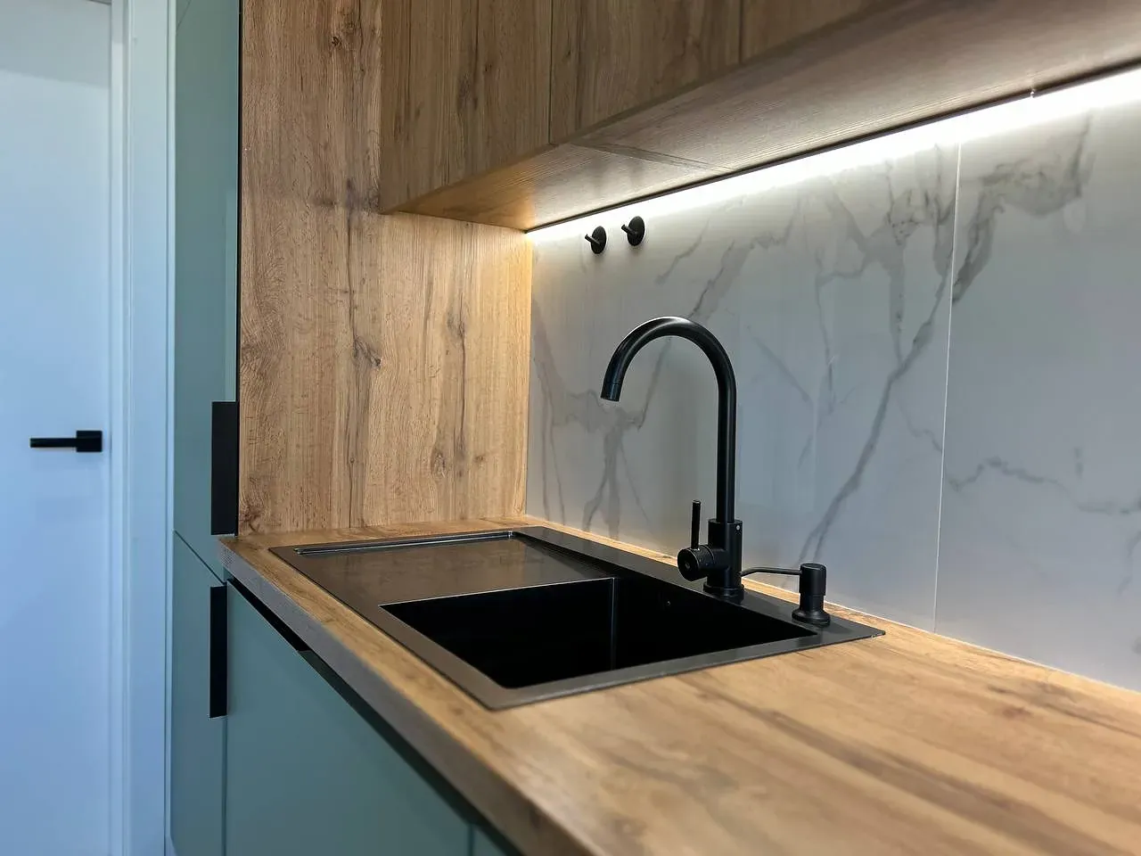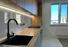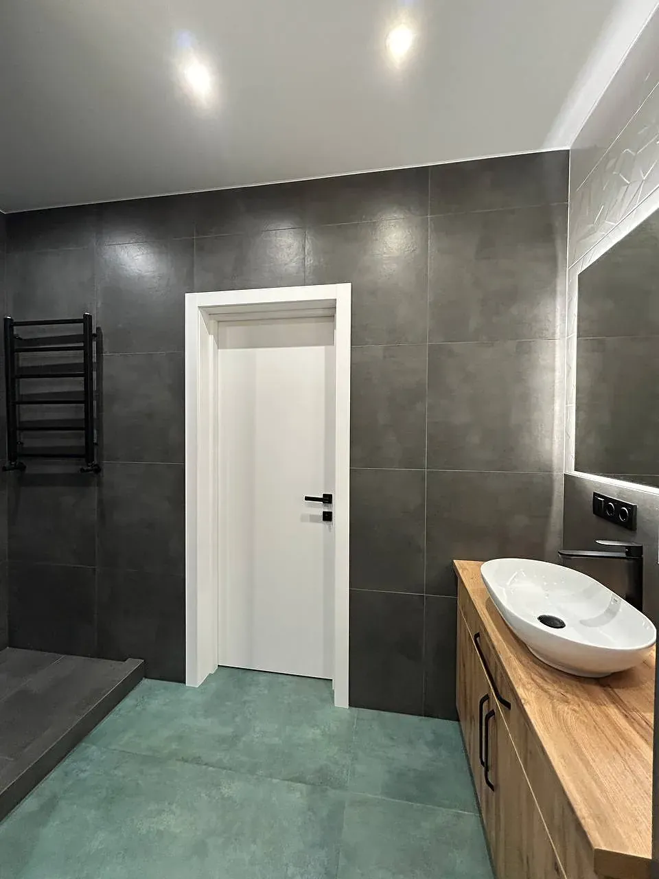 • санвузол продуманий до дрібниць: пральна машина Samsung, дзеркало з підсвіткою, шафа, тумба з умивальником, інсталяція, душова зона з поличками, сушка для білизни